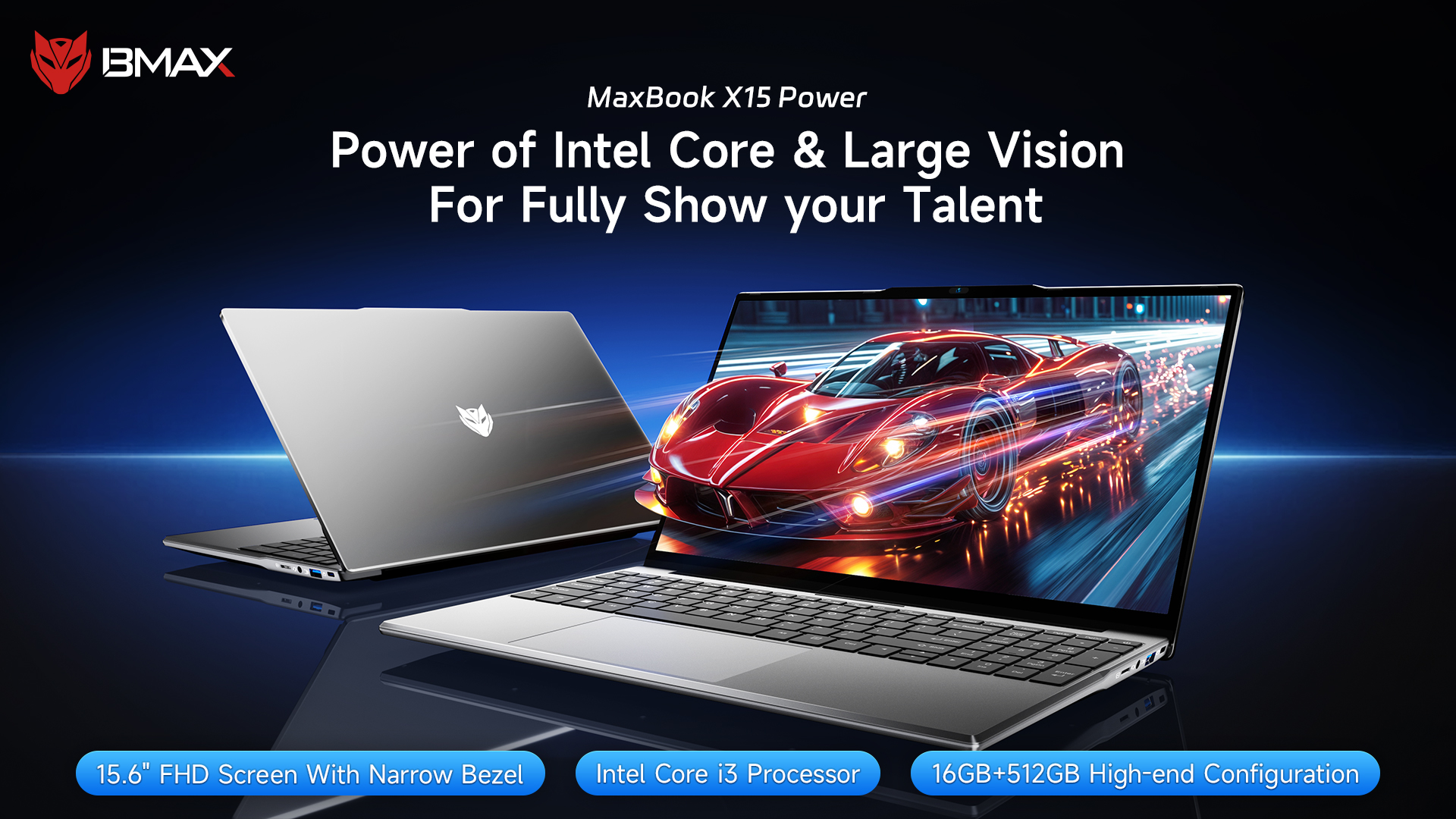 BMAX X15 Power โน๊ตบุ๊ค Notebook 15.6 นิ้ว Windows 11 Intel Core i3 RAM 16GB / SSD 512GB กางได้ 180 องศา ประกันในไทย 1 ปี ส่งจากไทย