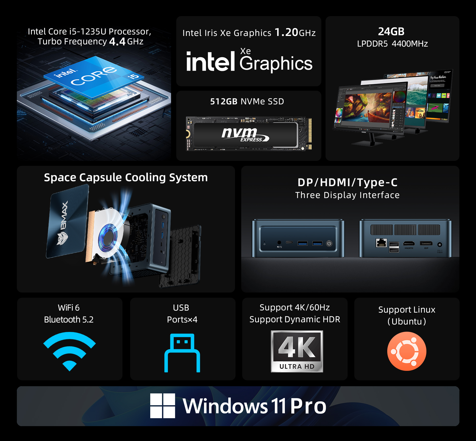 BMAX B9 Plus Mini PC มินิ พีซี Windows11 CPU GEN12 Intel Core i5-1235U Iris Xe Graphic RAM 24GB DDR5 + SSD 512GB NVMe รับประกัน 1 ปีในไทย